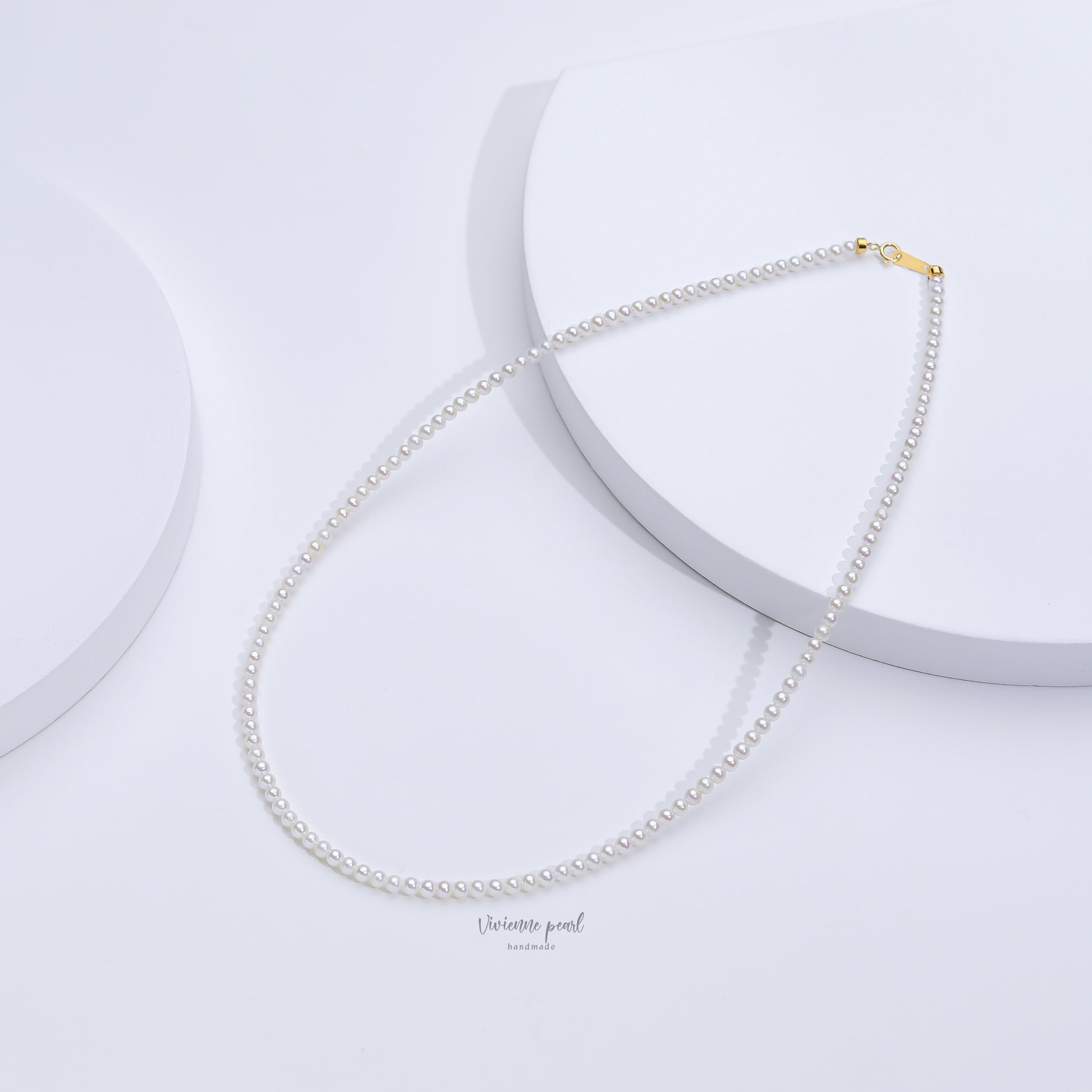3-4 choker necklace white bead pearl 18K gold-NF913