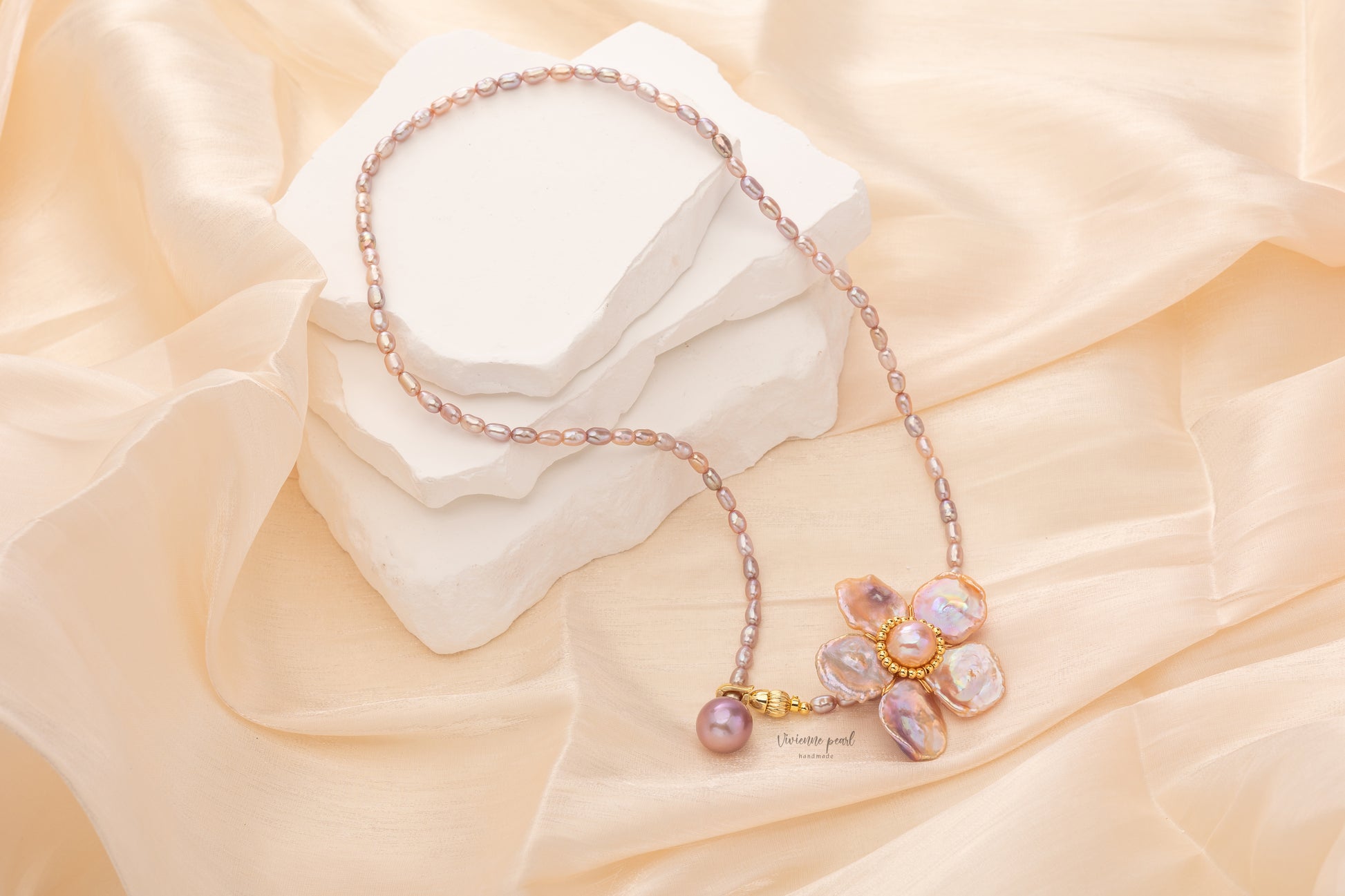 Petal martinee necklace purple fresh water pearl 14K gold filled-NF905