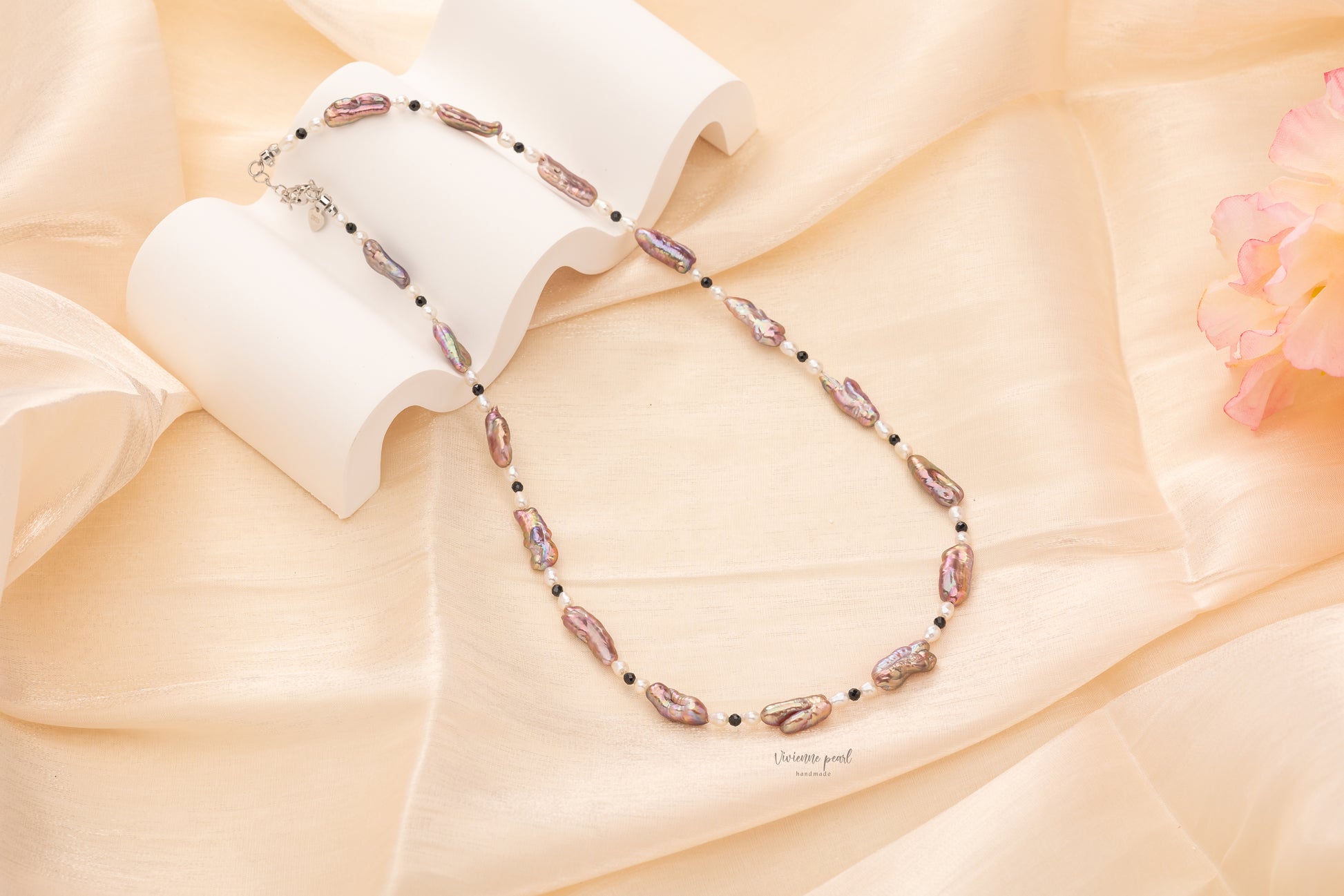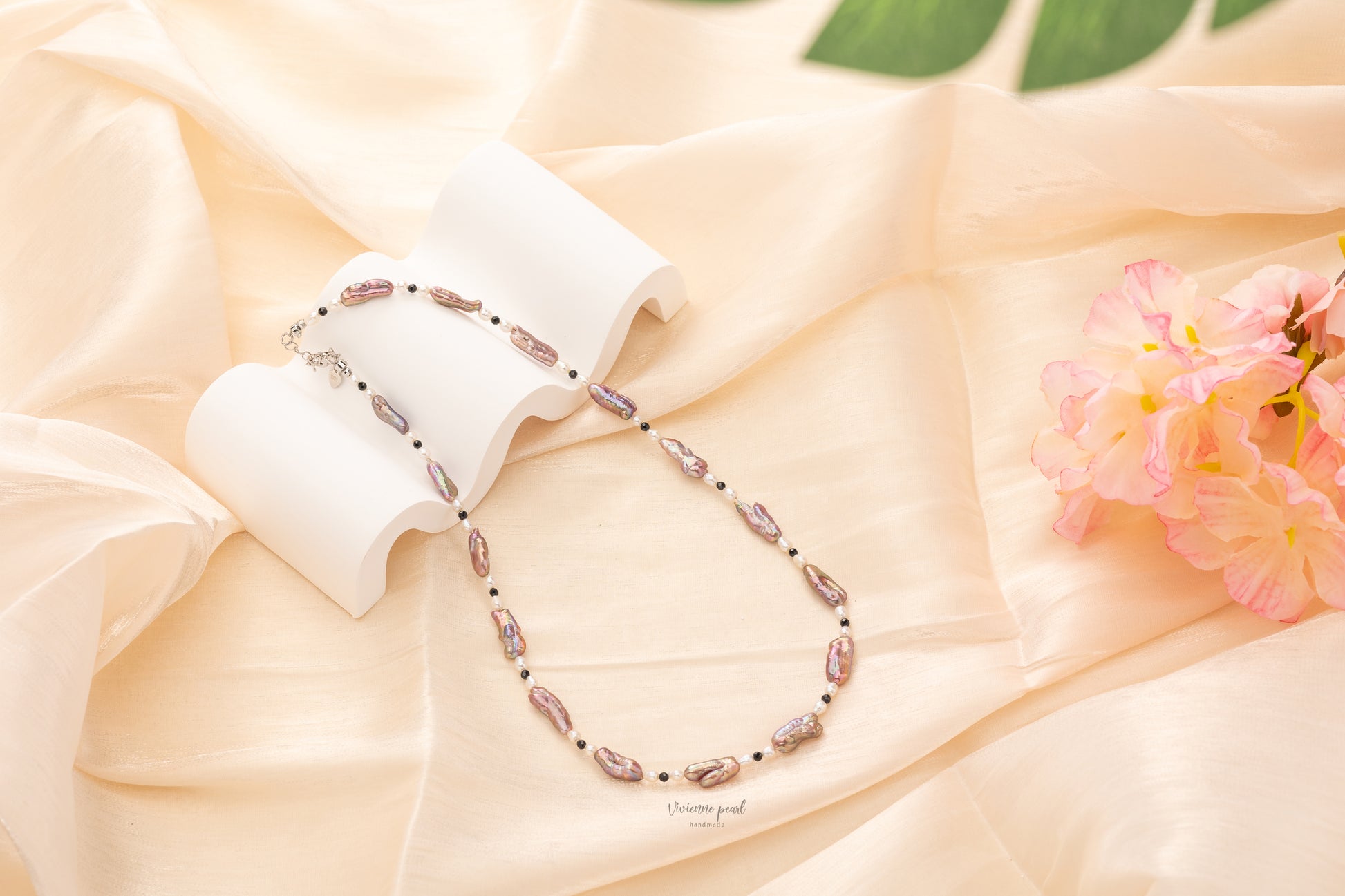 Shattered silver choke necklace purple fresh water pearl 14K gold filled-NF907