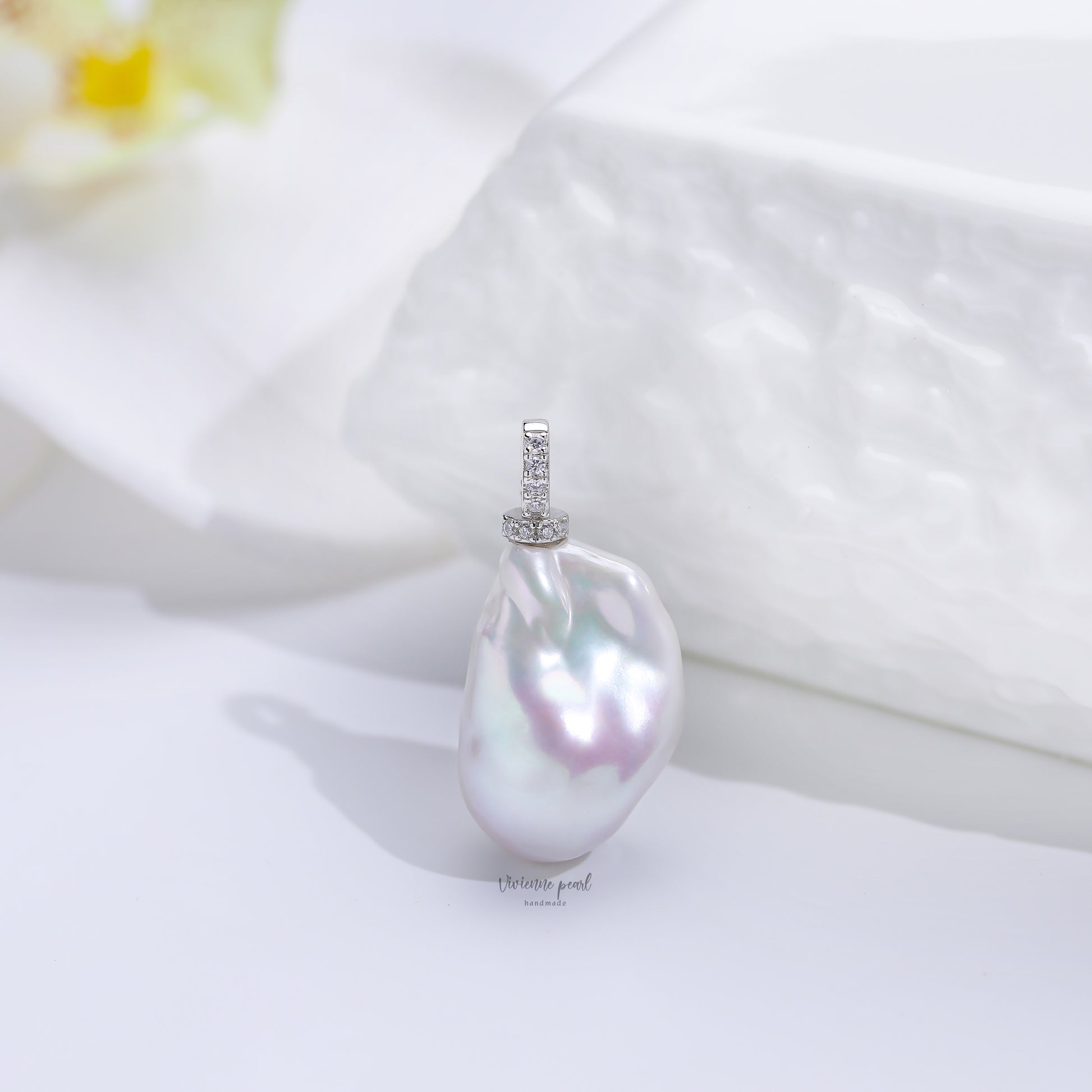 Add an air of sophistication to any outfit with our stunning White Baroque Pendant. Hand-crafted from 925 silver, this pendant exudes luxury and exclusivity. The unique baroque shape will make a statement and elevate your style. Available in limited quantities, secure yours now.